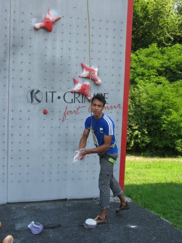 Les trois mousquetaires réunionnais que sont Elma FLEURET, Jean SALAUN-PENQUEUR et son frère EMMANUEL étaient de la partie. Philippe GABORIAUD avait fait le déplacement pour assister à cette dernière séance. Il a pu constater les progrès réalisés par ses protégés sur sur la voie officielle de 15 mètres dotée des nouvelles prises officielles, après une semaine d’entraînement au pôle France.