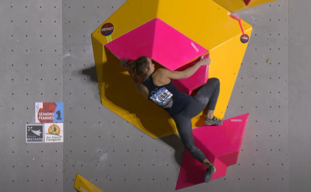 Oriane BERTONE : « Les premiers blocs étaient vraiment dans mon style, je bosse sur des blocs vraiment physiques en ce moment. Les autres sont très fortes dans tous les styles, elles sont complètes. […] J’ai profité, ça fait longtemps que je m’étais plus fait plaisir en compet du coup ça fait du bien ».