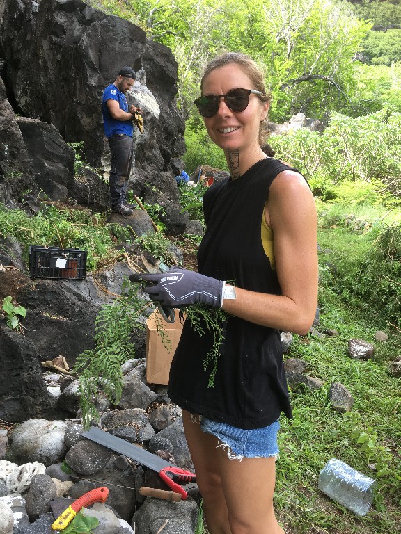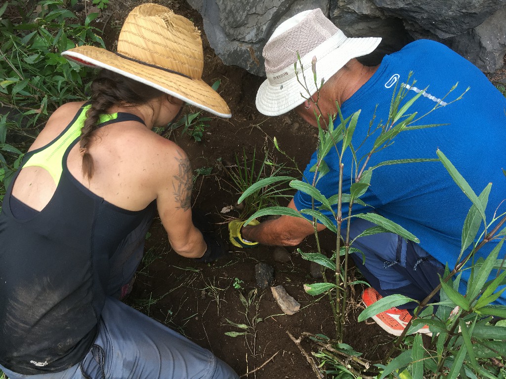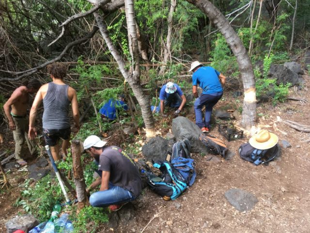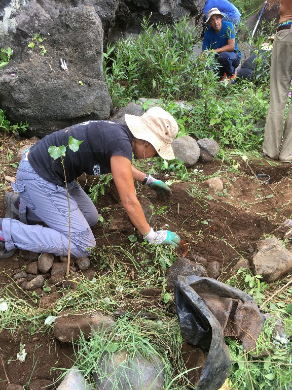 Concrètement, les bénévoles ont, sous la chaleur, nettoyé les déchets, défriché, déblayé à l’aide de machettes ou de pioches les plantes exotiques. Ensuite, ils ont planté les petits plants indigènes, donnés par KELONIA, qui ont grandi chez eux pendant plusieurs années. Parmi ces plants, nous avions : des lataniers, du mova,  des porchers, un grande natte ou encore du bois d’ortie. Ils ont été plantés au pied de la falaise et nous les avons arrosés.