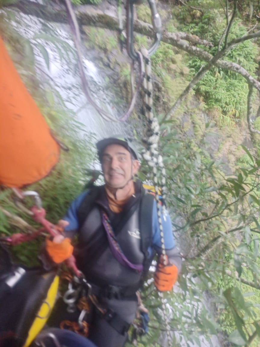 Nous sommes alors entrés dans le canyon avec la brume qui descendait lentement sur la vallée, une ambiance hivernale loin de la vision du canyon tropical !! Pendant ce temps de canyon, l’équipe d’organisation était affairée au rangement et nettoyage du campement pour que tout soit achevé à notre retour, le top !