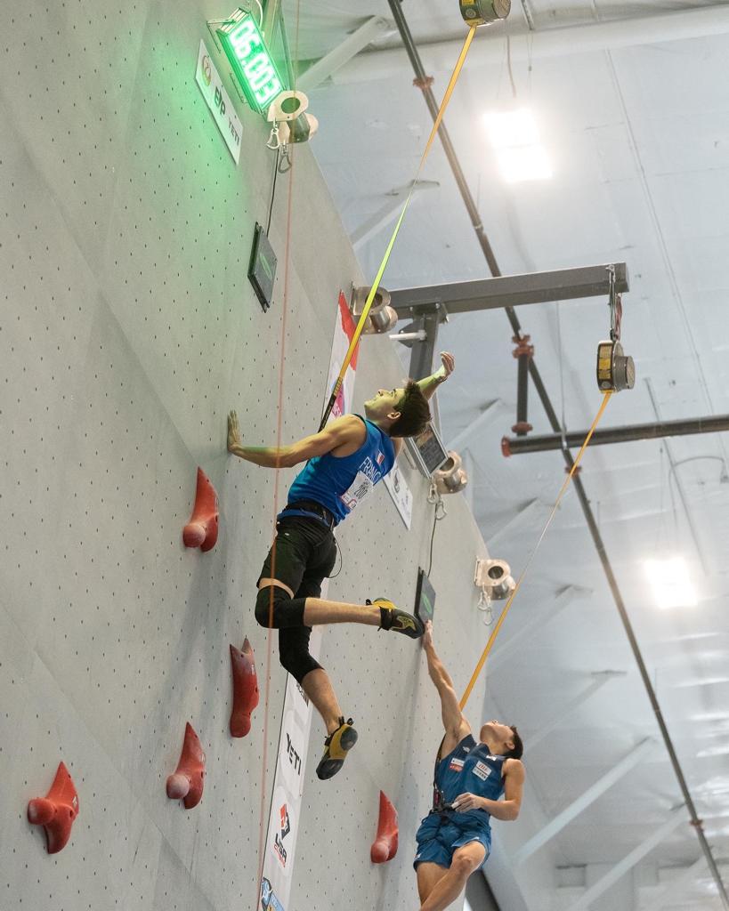 Quelques minutes plus tard, nouvelle médaille dans le clan réunionnais. Récemment médaillé de bronze aux Championnats d’Europe jeunes au mois de juillet, Marius PAYET GABORIAUD réalise une bonne entrée en matière en prenant le cinquième temps des qualifications d’une catégorie très relevée. En phase finale, le grimpeur du Pôle Espoir remporte ses duels et améliore ses chronos ; il élimine le japonais Ayumu MITA en 8ème de finale puis enregistre un nouveau record de France U18 en 5’’97 face au très solide polonais Oskar SZALECKI. En demi-finale, il affronte le favori américain Samuel WATSON. En commettant un faux départ, l’Américain propulse Marius en finale et lui assure une médaille. Dans le duel final face à l’italien Marco RONTINI, c’est malheureusement au tour de Marius de commettre un faux départ. Le jeune réunionnais s’offre le titre de vice-champion du Monde, son premier sacre au niveau mondial !