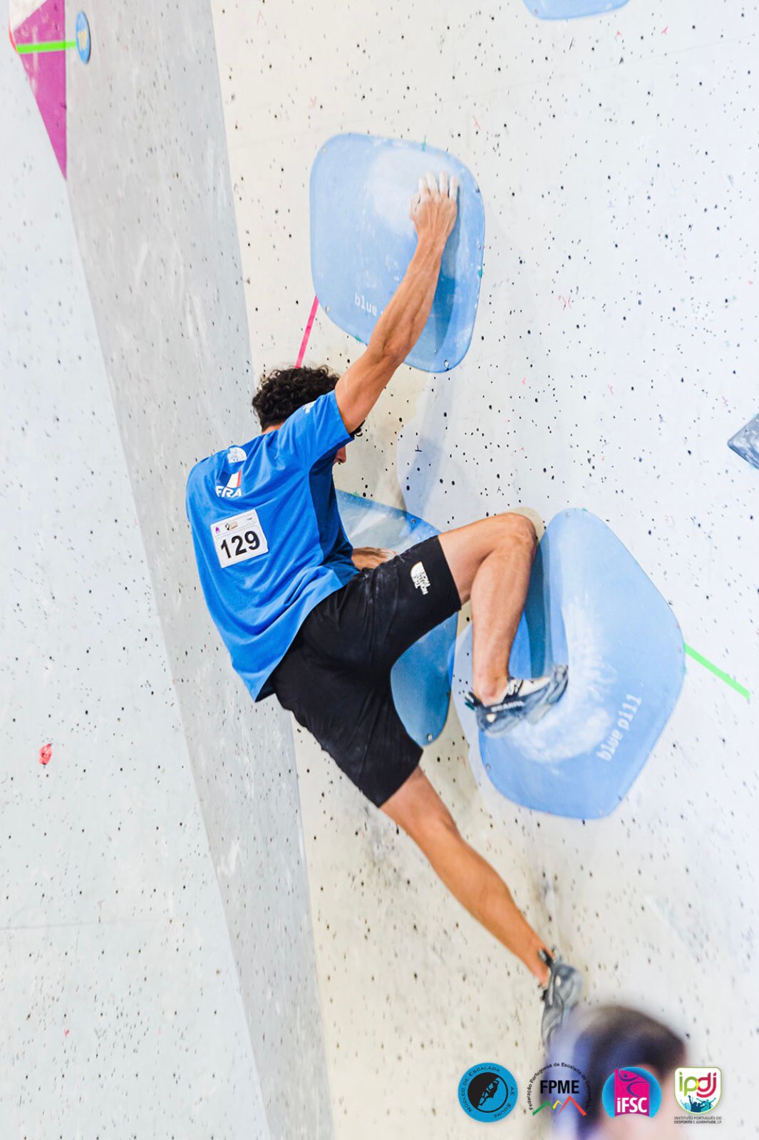, faisait office de véritable outsider. Troisième après les deux voies de qualification, le grimpeur du Pôle Espoir de la Réunion continue sur sa lancée et se classe deuxième des demies. En finale, Max pointe en tête du classement provisoire après son passage. Malheureusement, à la surprise générale, une réclamation posée par un concurrent pour un pied posé sur une plaquette le relègue à la 7e place. La compétition est remportée par Lucas DUFROS, devant Jules MACHALAND et Hugo PARMENTIER. Cap désormais sur le sélectif national, pour aller enfin décrocher une place en équipe de France de difficulté Sénior, le 25 mai 2024 à Fontainebleau.