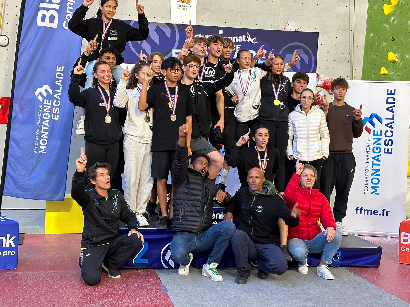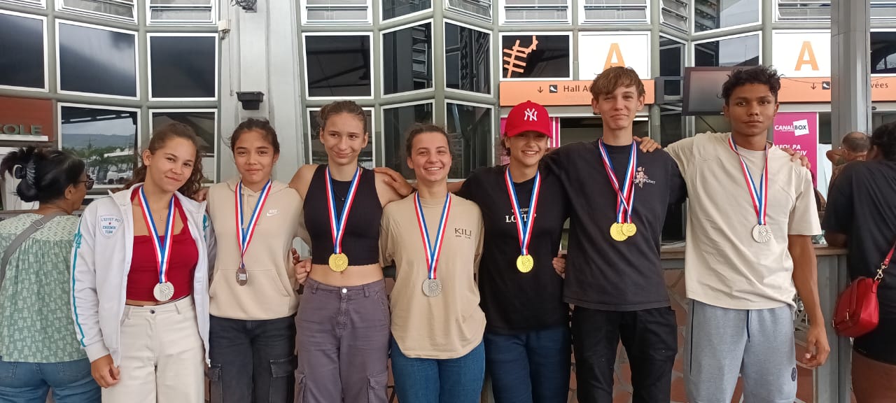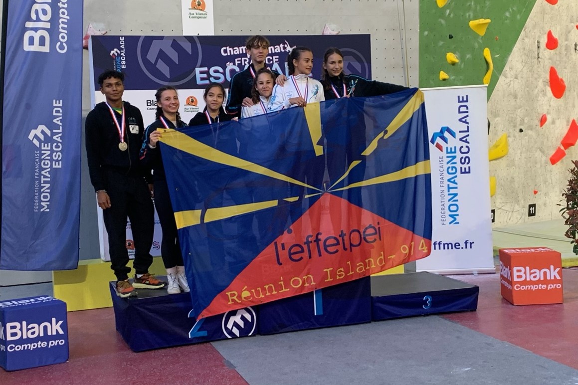L’escalade réunionnaise fait sensation à Tarbes aux  Championnats de France de vitesse Jeunes ce week-end en Occitanie. : 7 médailles pour 7 athlètes engagés, dont 3 titres de Champions de France et quatre titres de vice-champions de France  !