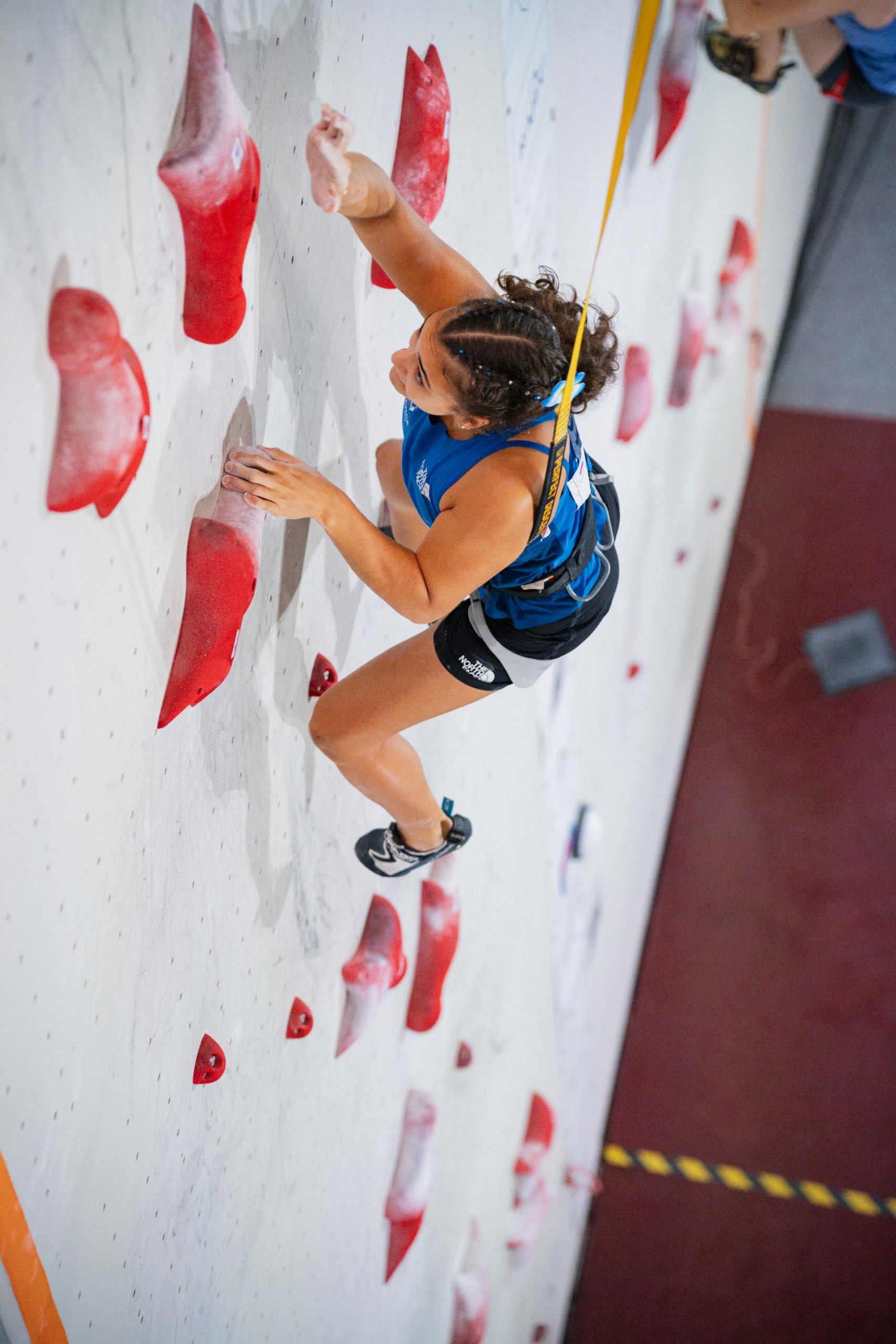 Pour Eva-Lina RYMASZ (Austral Roc), l’aventure s’arrêtera en quart de finale ; malgré un bon départ, une erreur à mi parcours la repousse au 6e rang en U19.