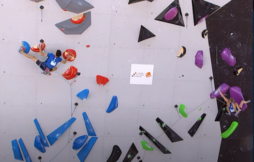 Premier à entrer en lice en vitesse, Léo GROSSET (Austral Roc) débute parfaitement sa compétition en prenant la 4e place des qualifications, et en effaçant le record de France U16 de plus de 20 centièmes (6sec01) ! Il passe ensuite sans encombre les huitièmes de finale en améliorant encore la marque (5sec95). Dans un quart de finale très disputé contre le chinois Zexuan YU, il s’incline malheureusement pour 4 centièmes. Néanmoins, le grimpeur du Pôle Espoir écrase une nouvelle fois son dernier chrono, et descend le nouveau record de France U16 à 5sec75 ! Il terminera 5e de ses deuxièmes championnats du Monde.