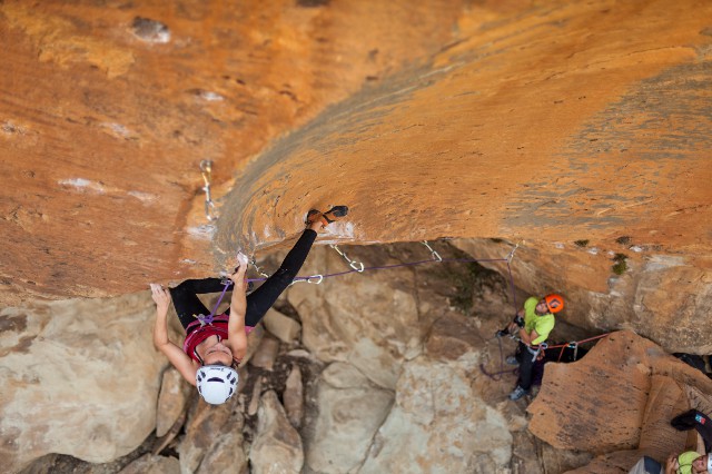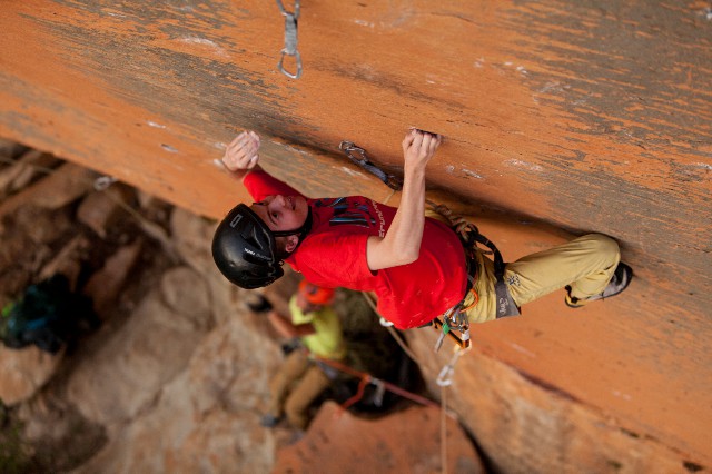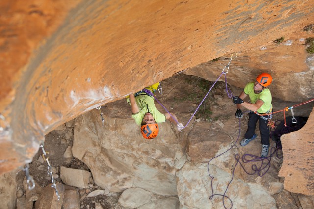 Dès le lendemain matin nos grimpeurs mettent leurs doigts dans les fameux trous des lignes incroyablement esthétiques de la falaise de Wow Prow qui domine l’immense plaine alentour. Un décor paisible de fermes isolées entourées de prairies où s’égaient chevaux, moutons, vaches ou antilopes. Nos jeunes falaisistes vont découvrir leur limite dans ce style de voie jusqu’alors inconnu. Les sections dures sont décryptées, chacun trouve sa méthode et les tentatives d’enchaînement se précisent dans le projet de chacun (« Death camp » 8A+, « Future life » 8B ou « Digital Warefare » 8B+). Nos intendants Juliette et Stefano s’affairent chaque soir pour nous offrir un petit festin et réparer les petits bobos. Gustav installe un va et vient vertical  pour le déplacement à distance de sa GoPro. Il passe des heures suspendu sur sa corde statique, l’oeil rivé sur l’objectif à l’affût d’un cliché de magazine (et il en réussira plus d’un!) comme vous le constaterez dans la galerie ci-dessous.