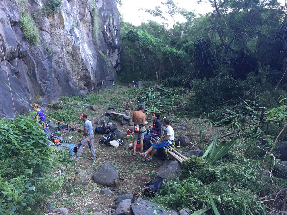 Et dans un monde parfait tout les grimpeurs auraient un sabre, un sécateur dans leur sac, pour entretenir le chemin d’accès et les voies … Ainsi Dom, équipeur bénévole prolifique de l’île, n’aurait pas besoin de sortir son sabre pour nettoyer l’accès aux Aloès, site que tellement de grimpeurs empruntent que les maillons s’usent plus que partout ailleurs ! Il se sentirait moins seul et aurait encore plus d’énergie et de plaisir à équiper de nouvelles voies pour la communauté.