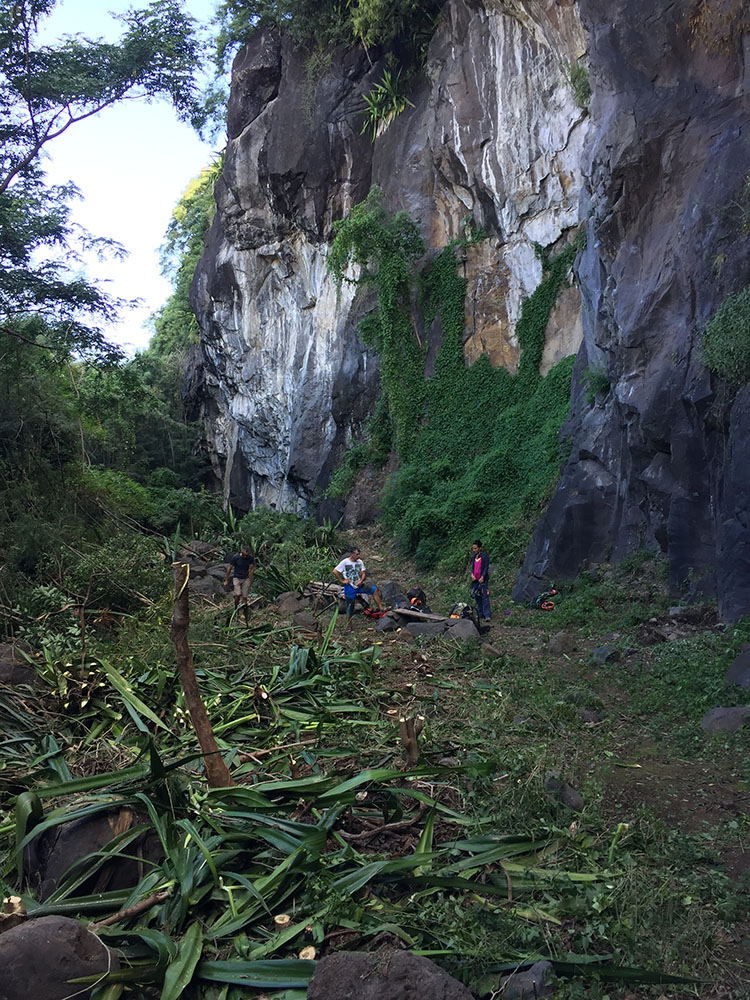 suite à la dépression fakir l’accès au site d’escalade de la Grande Ravine est encombré par un nombre important d’arbres cassés qui recouvre le chemin . La prudence est de mise . S’armer d’un coup coup semble judicieux …