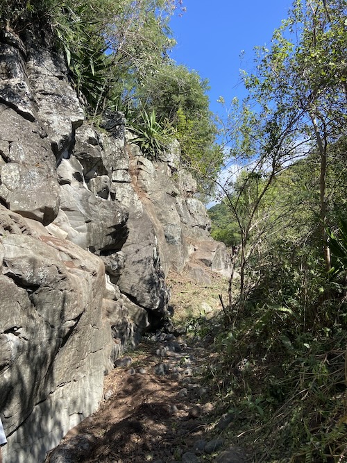 Gros boulot de nettoyage ce dimanche au 1er secteur de la ravine Patate à Durand ! C’est un secteur idéal pour de l’initiation, à l’ombre le matin.