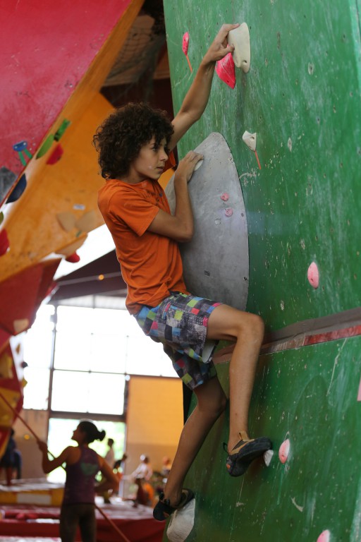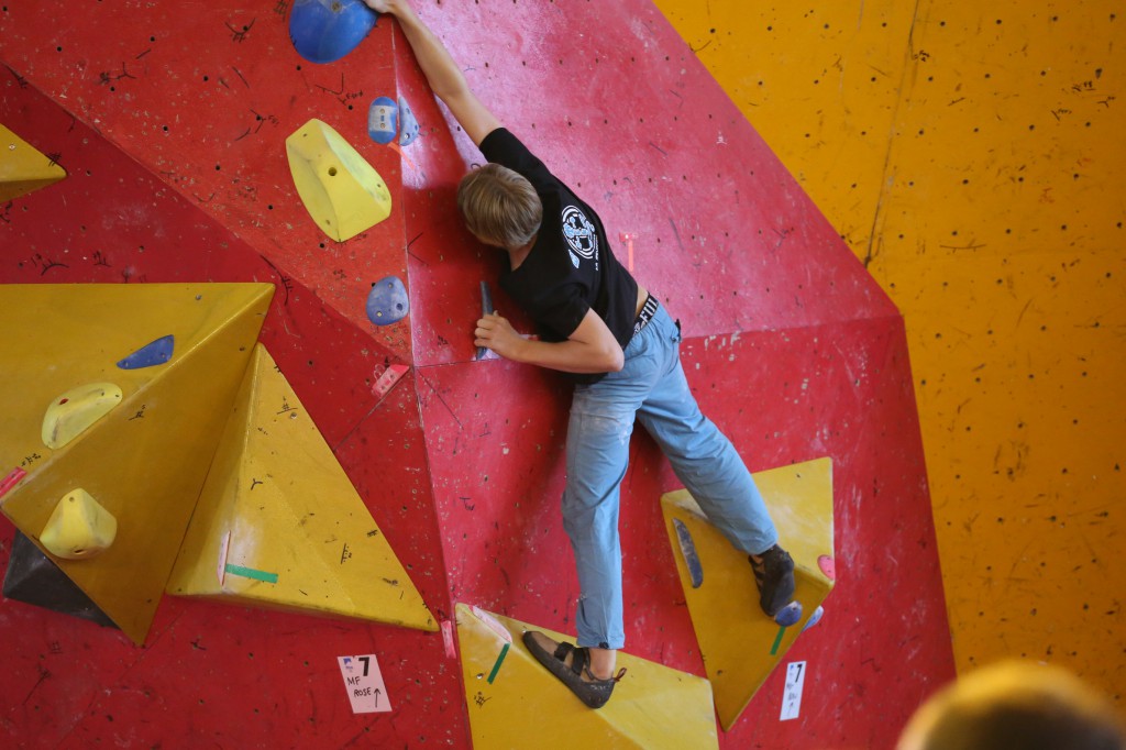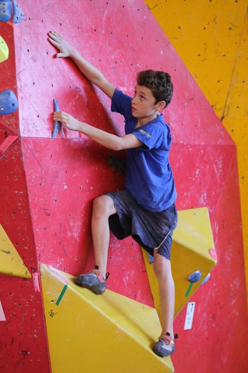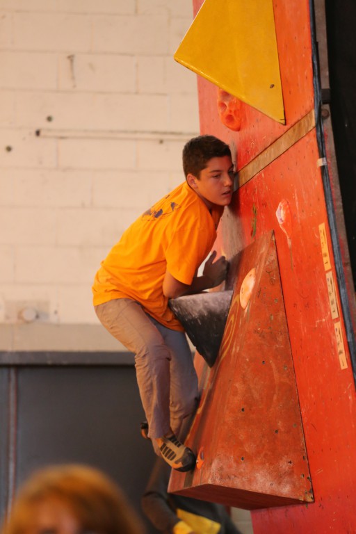 Baptême du feu aussi pour le minime Théo ALDEBERT (7A l’ouest) doté de bons « vérins » lui permettant de venir à bout des blocs les plus physiques.