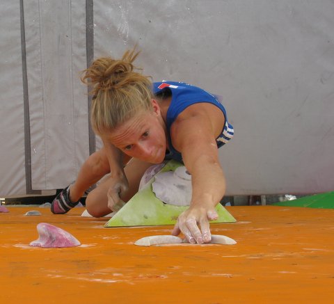En senior toujours, Fanny GIBERT (7a l’Ouest) après un break (bien mérité) de fin d’année universitaire revient aux affaires et gagne son ticket pour la finale de ce soir. Elle est 3ème du classement provisoire à l’issue du contest de 40 blocs proposé aux séniors. La finale de ce soir ne sera pas de tout repos au vue du niveau très relevé des finalistes. Mais Fanny aime les défis; l’an dernier elle était déjà sur le « très sélect » podium senior du TAB…