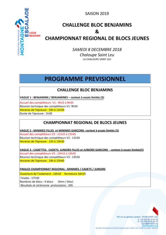 CHALLENGE Samedi 08 décembre 2018 Compétition de Bloc INSCRIPTIONS INDIVIDUELLES |