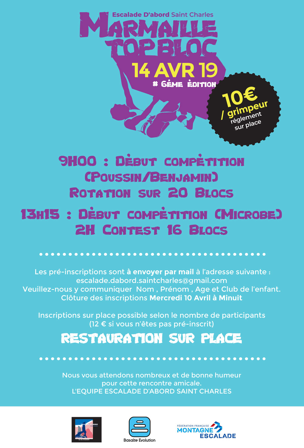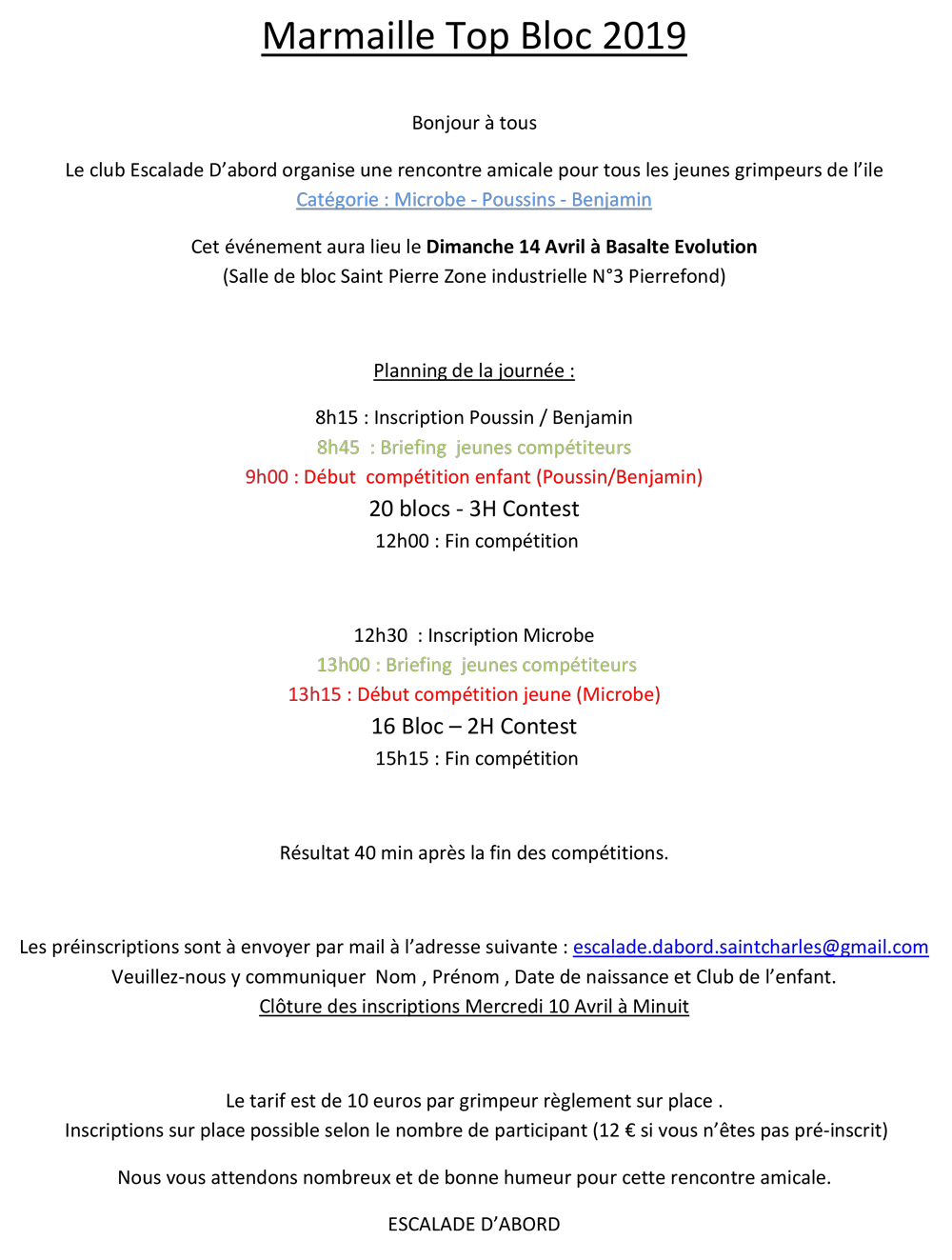 - Il n’y a pas d’inscription sur place, le jour de la compétition