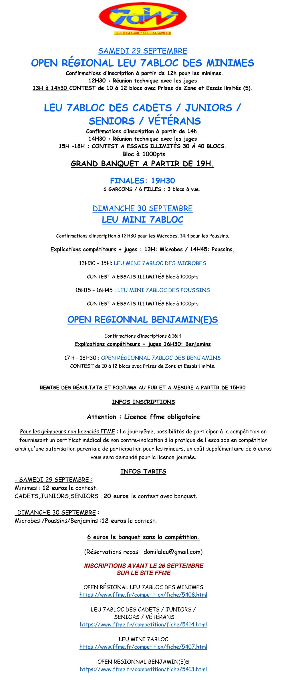 - 13h45 : Début compétition adultes (juniors/seniors/vétérans/masters)