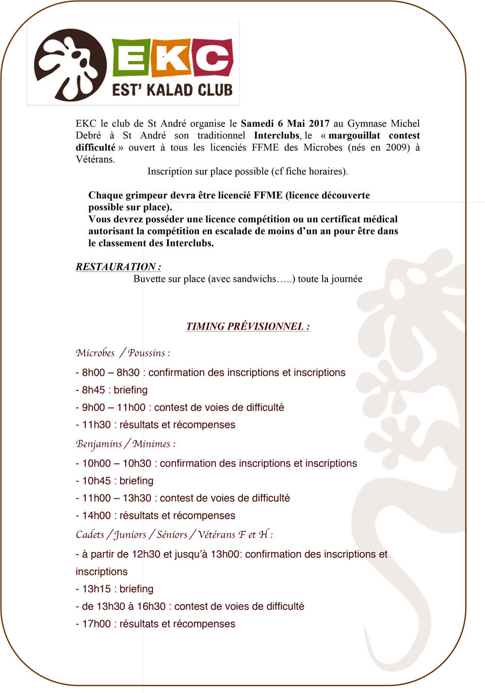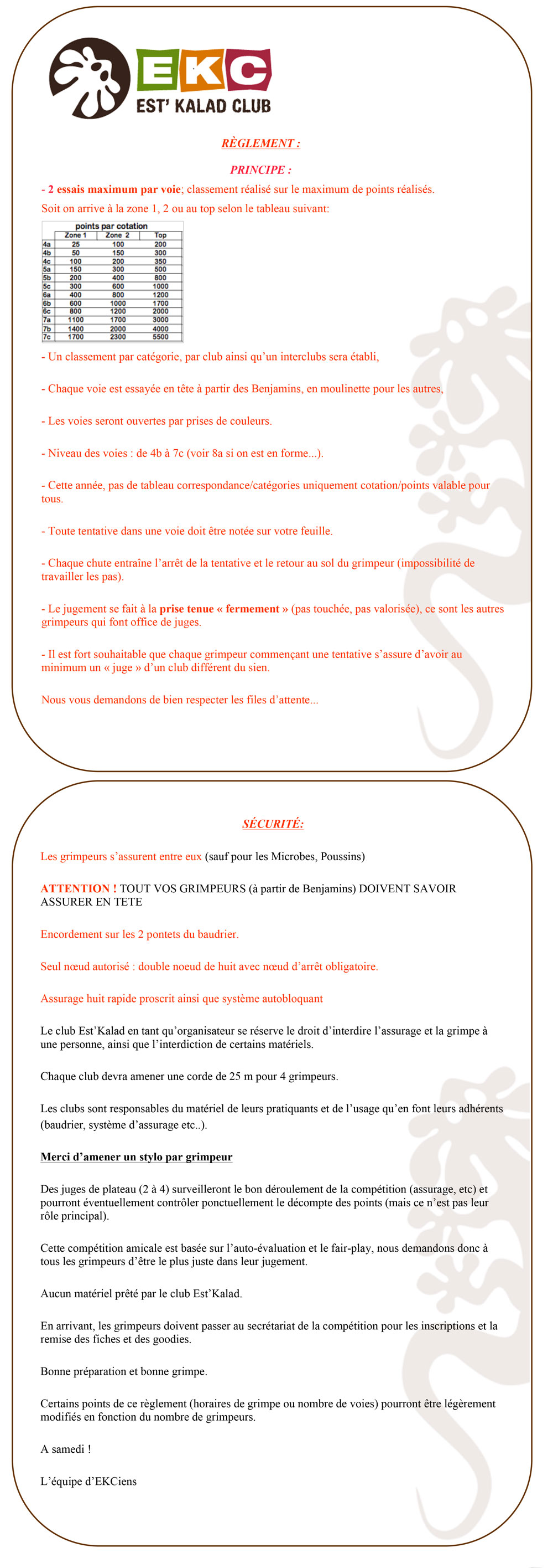 | + certificat médical obligatoire de non contre-indication à la pratique de l’escalade en compétition | + certificat médical obligatoire de non contre-indication à la pratique de l’escalade en compétition |
