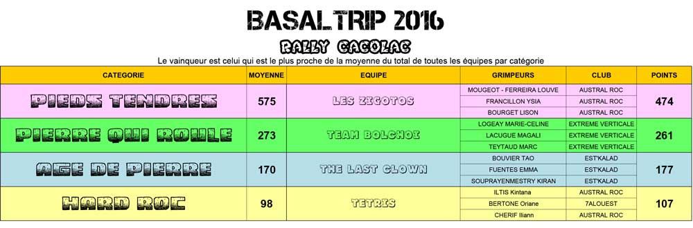 Les grimpeurs et grimpeuses concernées seront annoncées le jour de l’évènement, en fonction de leur résultat individuel effectué lors du Basaltrip « HARD ROC ».