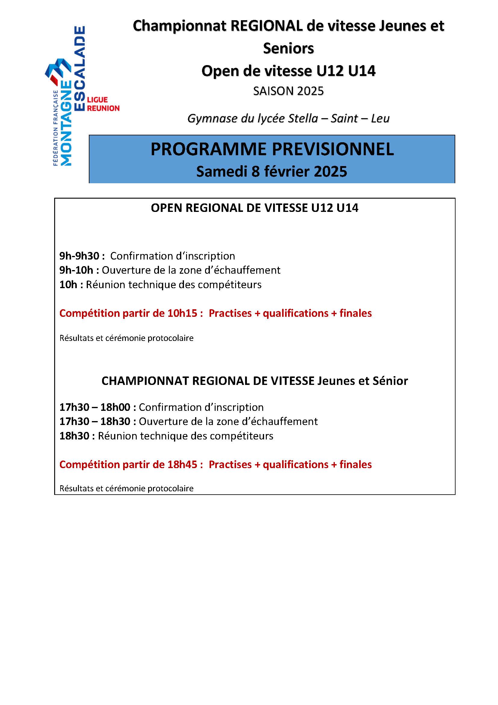 - Pour des compétitions régionales, un Questionnaire de Santé ou certificat médical de non contre-indication à la pratique d’escalade en compétition doit être rattaché à la licence.