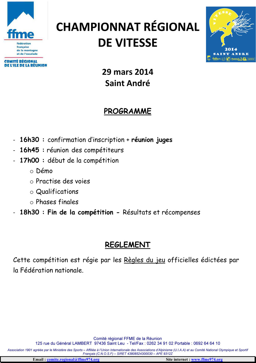 CHAMPIONNAT REGIONAL DE VITESSE 2014