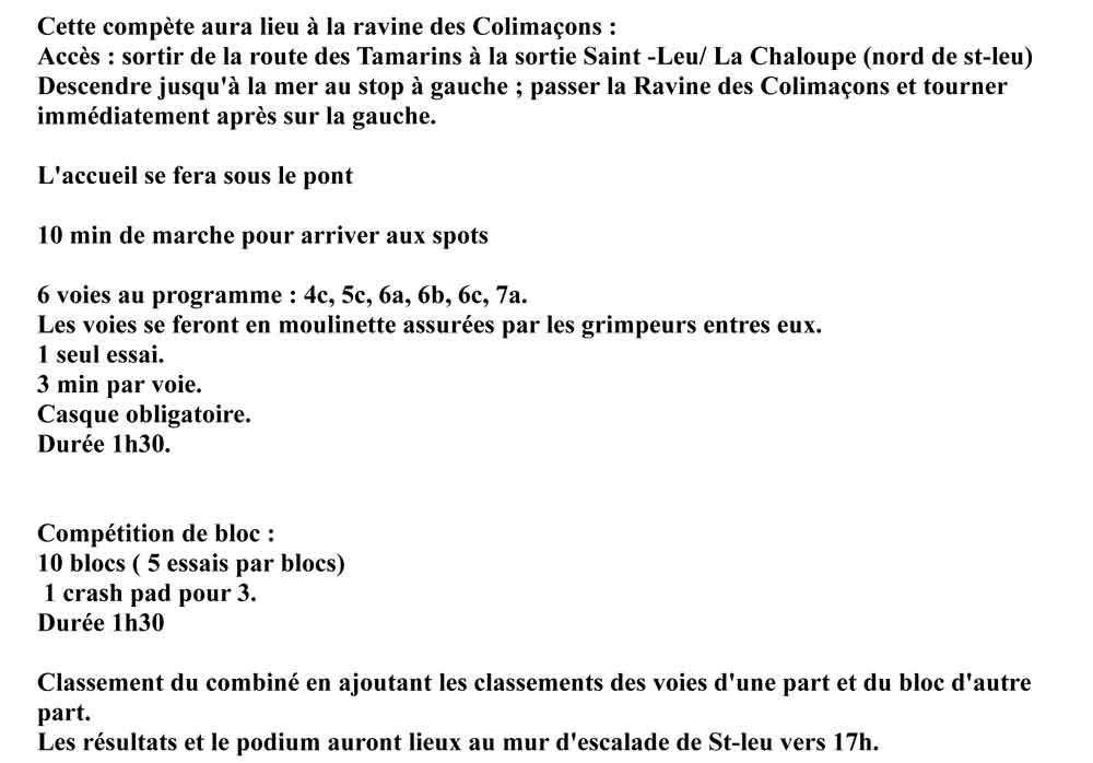 • Il n’y a pas d’inscription sur place, le jour de la compétition