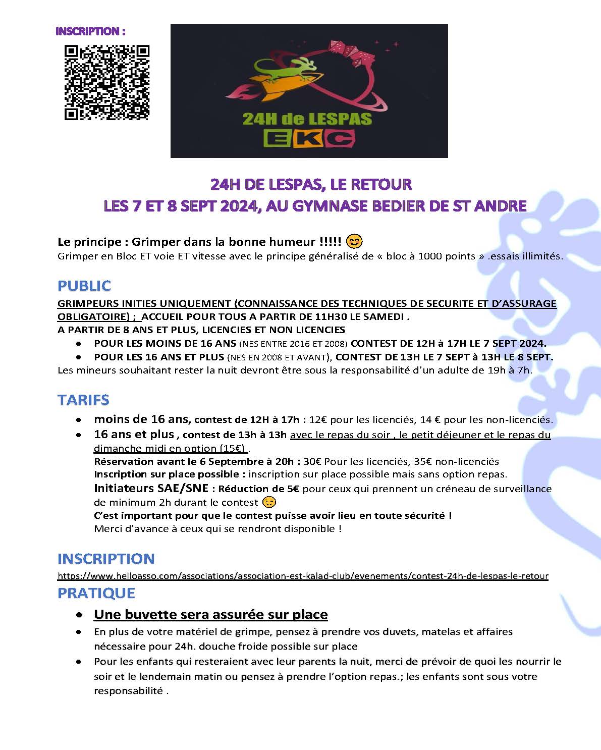 La clôture des inscriptions se fera le mercredi 30 octobre 2024 pour les adhérents.