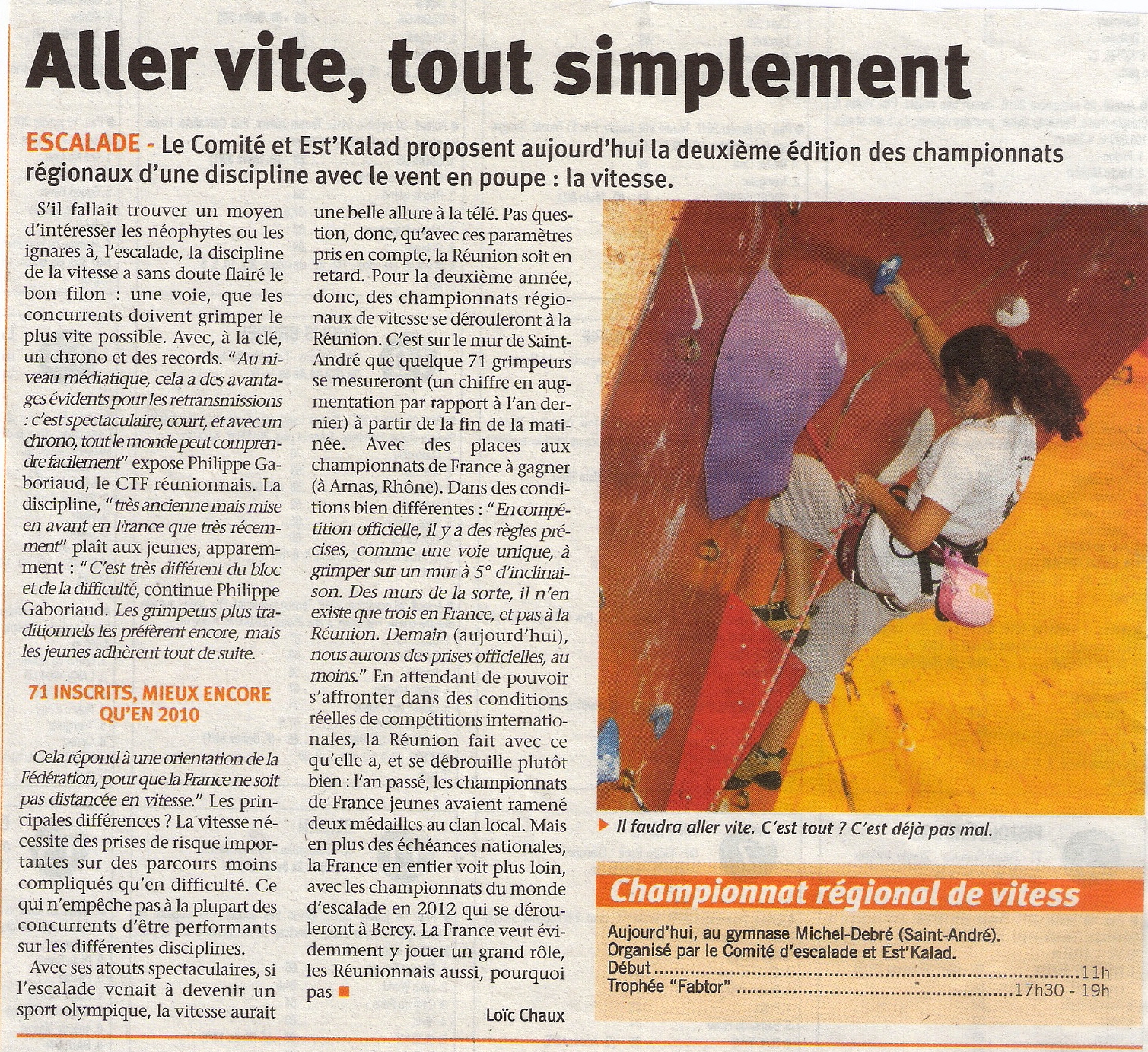 Cette compétition, organisée par le Comité Régional de la fédération française de la montagne et de l’escalade, constitue une étape importante dans le parcours sportif des grimpeurs réunionnais, puisqu’elle est qualificative pour la sélection regionale, qui permettra de participer aux Championnats de France de Bloc.