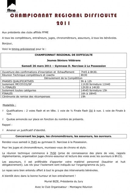 Un listing actualisé des inscrits est consultable sur le site du Comité ffme974. Merci de vérifier régulièrement la présence des compétiteurs.