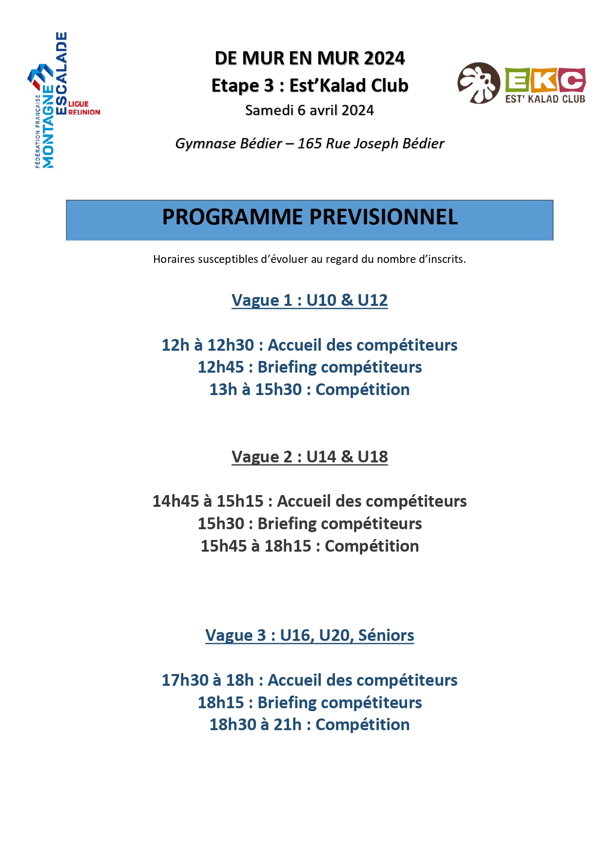 Rendez – vous le samedi 6 avril à Saint-André sur le mur de EKC pour l’étape 3 !