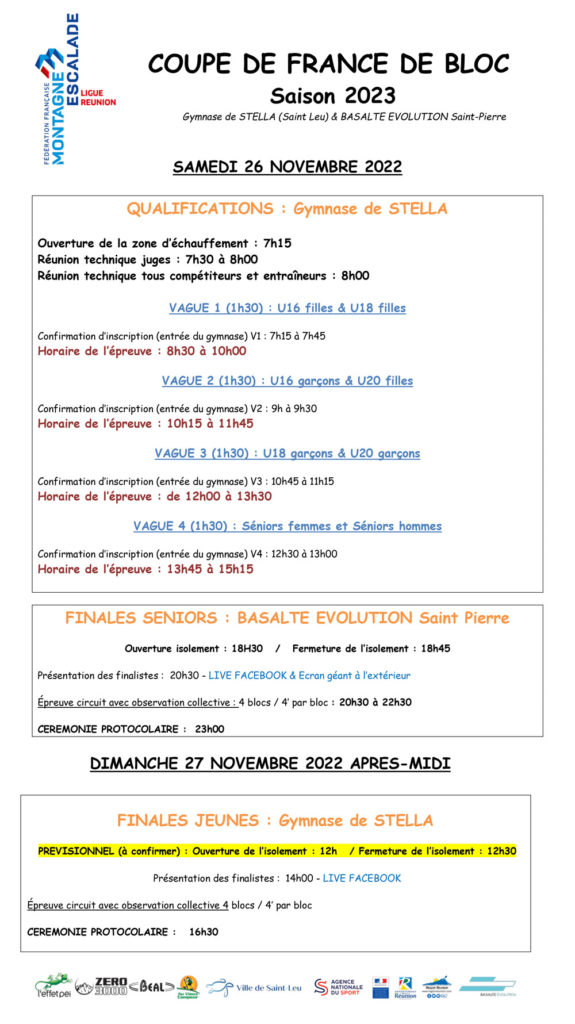 - Il n’y a pas d’inscription sur place, le jour de la compétition