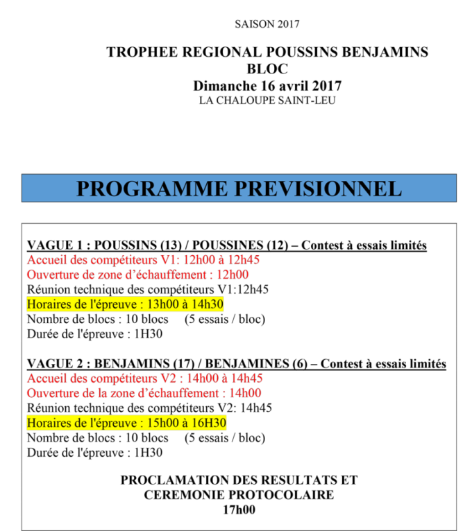 Par contre le dimanche 16 avril à la Chaloupe Saint Leu, il n’y aura pas de buvette snack pour le public et les compétiteurs. Pensez à prendre de quoi vous restaurer et vous hydrater.