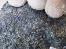 3) Le troisième facteur important, surtout pour nos empruntes digitales, c’est la vitesse de refroidissement du magma. Plus un magma refroidit lentement, plus celui-ci cristallise. Au contraire, lorsqu’il se refroidit instantanément (au contact de l’eau par exemple), les cristaux n’ont pas le temps de pousser et le basalte est alors dénué de cristaux. Oui, et alors quelle différence ? Et bien ça change tout pour l’adhérence et pour vos doigts. Des cristaux petits (0,5 mm) et abondants donnent un caillou adhérent sans être agressif (comme du papier de verre). Au contraire, lorsque les cristaux font 5 mm ou plus, leurs angles sont très agressifs et le caillou broute rapidement les doigts.