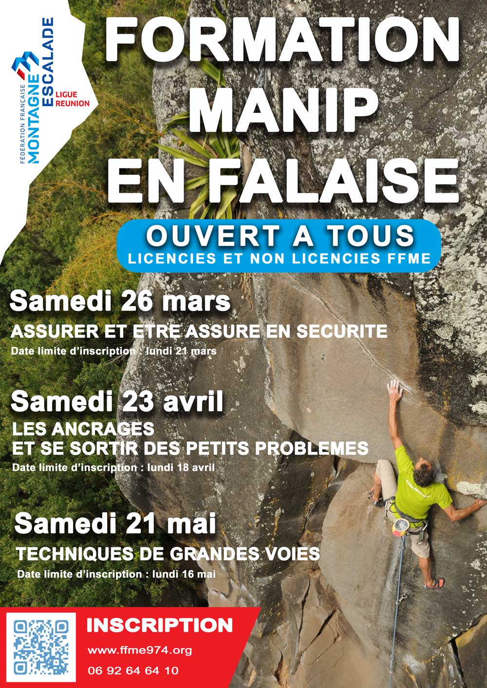 Afin d’optimiser la sécurité pour tous, la Ligue Réunion FFME propose aux licenciés et aux non licenciés FFME, 3 journées de formation aux techniques d’escalade en falaise.